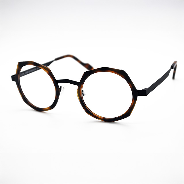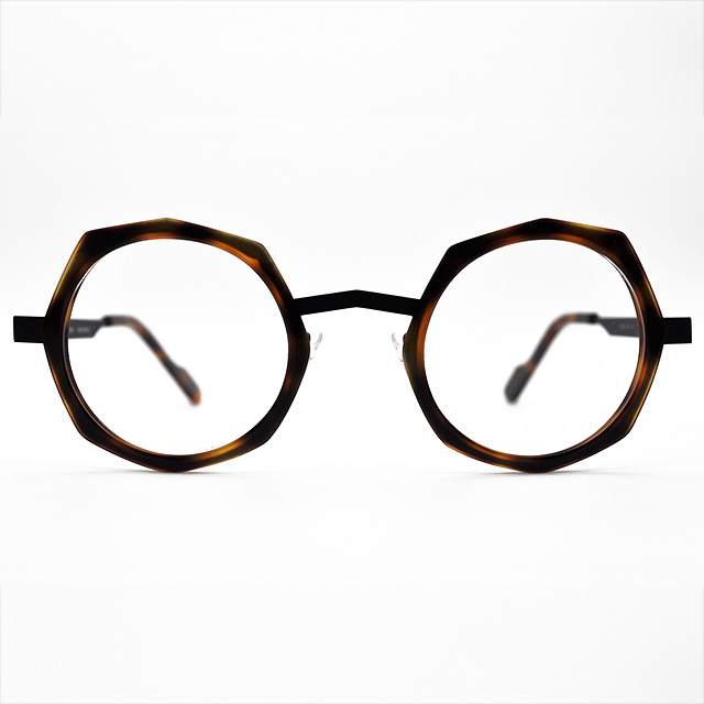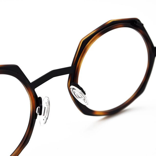 ダイナミックな八角形のプラスチックリムが力強さを感じるフランスのアンバレンタインサーカムフレックス形状のブリッジが鼻筋を美しく見せてくれます。