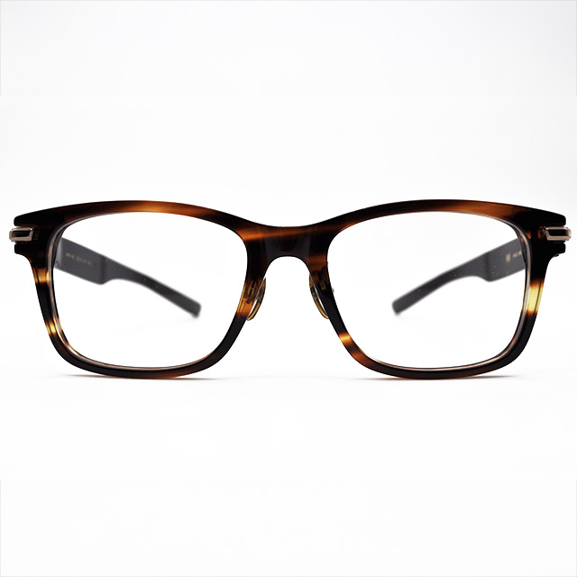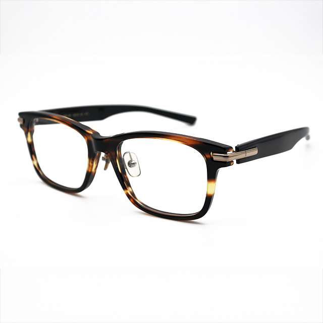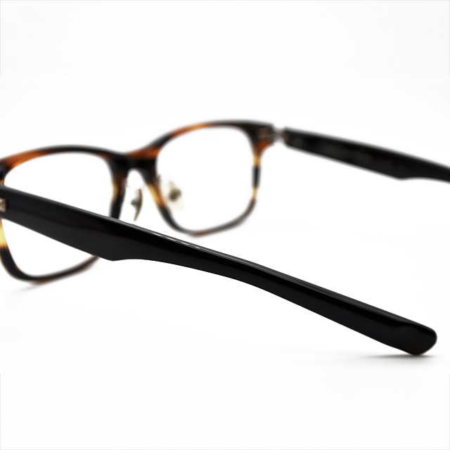 美しいフロントカラーとブラックのテンプルの組み合わせが好評なフォーナインズのネオプラスチックフレーム。テンプルの耳元はフィッティングを行うために細く仕上げられています。