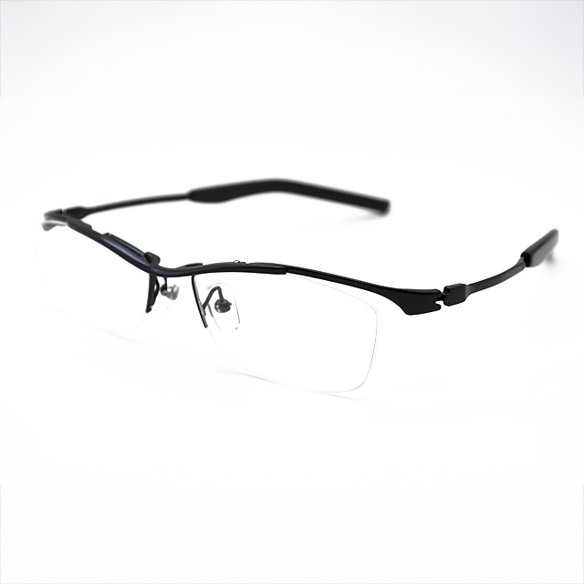 深いブルーが目元を爽やかに清潔感も与えてくれるフォーナインズのSPシリーズ幅広のモダンを正しくフィッティングすることで滑り落ちを防ぎ、快適です。