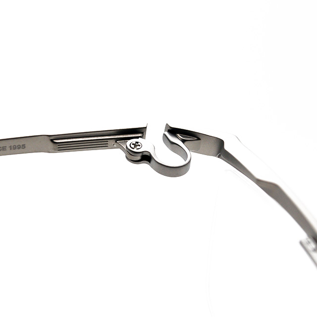βチタン製の”逆Rヒンジ”がフロントパーツにかかる負荷を軽減し、フレームの変形も防ぎます。