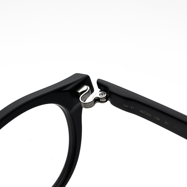 不変的なボストンフォルムは年齢や性別を問わず多くの方から支持を得ているフォーナインズのSPシリーズβチタン製の逆Rヒンジが余分な負荷を軽減し、フレームの変形を防いでいます。