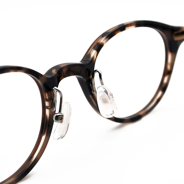 スモールサイズのボストンシェイプに表と裏の異なるカラーで鯖江で製作されたベセペセのコンビネーションフレーム。しっかりと埋め込まれたクリングスと曲面状のノーズパッドが目とレンズの距離を適正に保ちます。