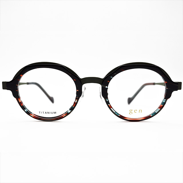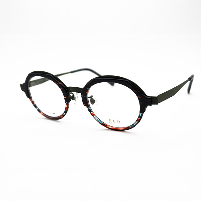 目元にプラスチックリムの美しい彩りを加えることで表情も明るくなるゲンのコンビネーションフレーム。柔軟性のあるテンプルとモダンを正しくフィッティングすることで快適で滑り落ちを防ぎます。